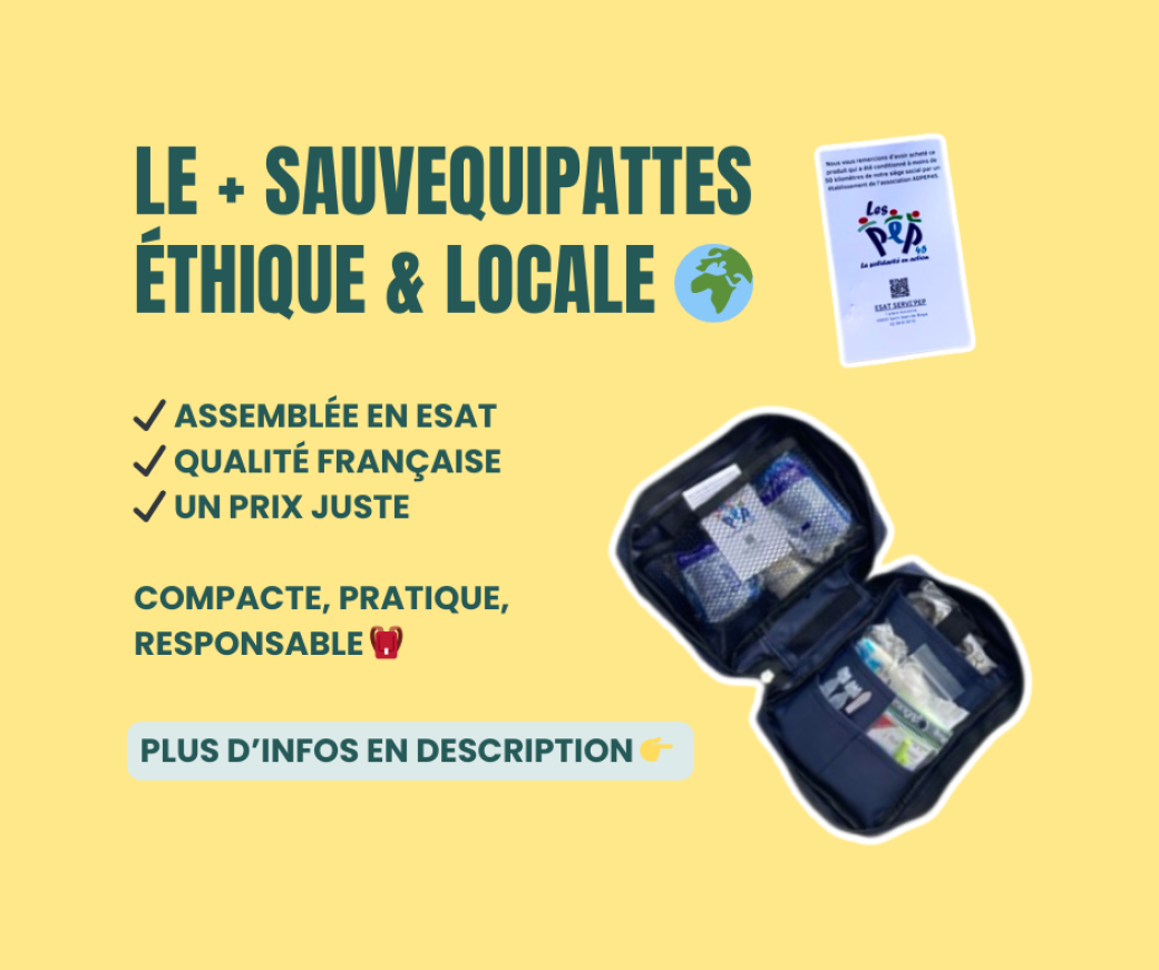 Découvrez notre trousse de secours SauveQuiPattes, conçue pour répondre aux besoins essentiels de vos chiens et chats.